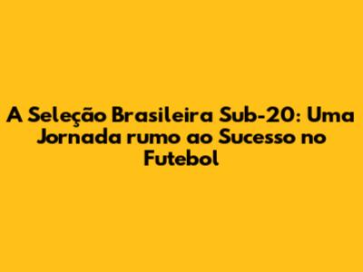 A Seleção Brasileira Sub-20 é um patrimônio do futebol brasileiro. Com sua história de sucesso, seus ídolos e suas conquistas, a equipe representa a esperança e o futuro do futebol nacional. A cada jogo, a cada campeonato, a Seleção Sub-20 mostra ao mundo a força do futebol brasileiro e a capacidade de revelar novos talentos. A paixão pelo futebol, que corre nas veias do povo brasileiro, é transmitida de geração para geração, e a Seleção Sub-20 é um dos principais responsáveis por manter essa chama acesa. Portanto, continue acompanhando a Seleção Sub-20, torcendo pelos nossos jovens craques e celebrando cada vitória. O futuro do futebol brasileiro está em boas mãos, e a emoção de ver a Seleção Sub-20 brilhar nos palcos internacionais é algo que nos enche de orgulho e que nos faz acreditar no futuro do futebol brasileiro.