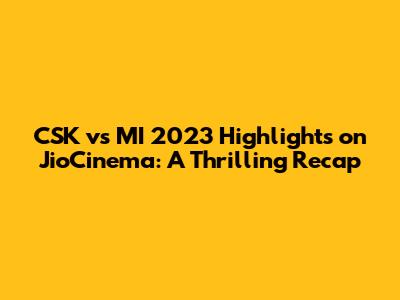 Hey cricket fans! Let's dive into the electrifying world of the CSK vs MI 2023 clashes, focusing on where you can relive those heart-stopping moments: JioCinema. If you're anything like me, you're probably still buzzing from the nail-biting finishes, the incredible catches, and the sheer dominance displayed by both Chennai Super Kings (CSK) and Mumbai Indians (MI) throughout the season. These matches were more than just games; they were epic battles that showcased the best of cricket, and thanks to JioCinema, we can all experience the thrills and spills all over again. So, grab your snacks, settle in, and let's recap some of the most memorable moments and how you can catch all the highlights.