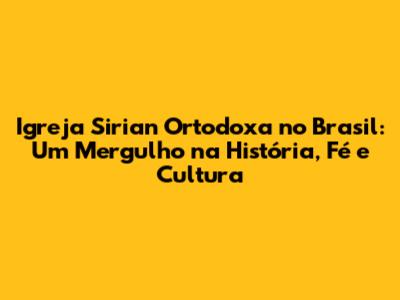 A Presença da Igreja Sirian Ortodoxa no Brasil: Comunidades e Templos