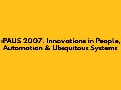 IPAUS 2007: Innovations In People, Automation & Ubiquitous Systems