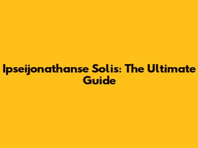 Ipseijonathanse Solis: The Ultimate Guide