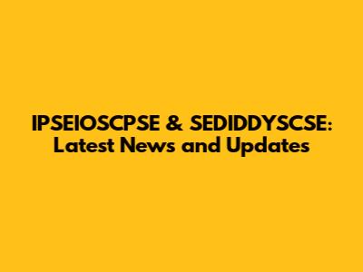 IPSEIOSCPSE & SEDIDDYSCSE: Latest News And Updates