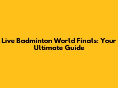 Live Badminton World Finals: Your Ultimate Guide