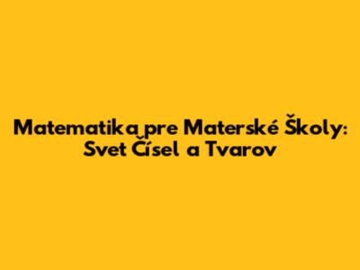 Matematika Pre Materské Školy: Pracovné Listy A Hry