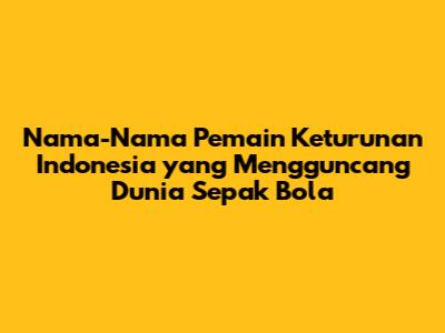 Guys, sepak bola Indonesia memang selalu menarik untuk diikuti, apalagi kalau sudah menyangkut nama-nama pemain keturunan Indonesia yang berlaga di kancah internasional. Mereka ini bukan cuma membawa nama Indonesia, tapi juga menunjukkan bahwa darah Indonesia bisa bersaing di level tertinggi sepak bola dunia. Penasaran siapa saja mereka? Yuk, kita bedah satu per satu!
