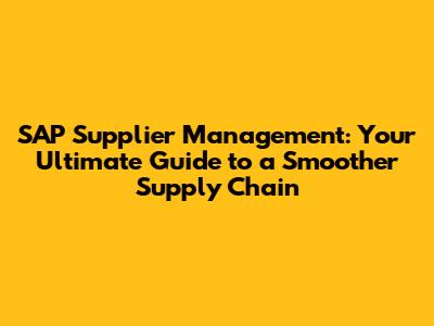 Hey everyone! Let's dive into the world of SAP Supplier Management – a crucial aspect of any successful business. In this article, we'll explore what it is, why it matters, and how it can revolutionize your supply chain. We'll break down the key components, the benefits, and some practical tips to get you started. So, buckle up, because we're about to embark on a journey that will transform the way you think about suppliers and procurement.