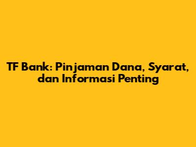 TF Bank: Pinjaman Dana, Syarat, Dan Informasi Penting
