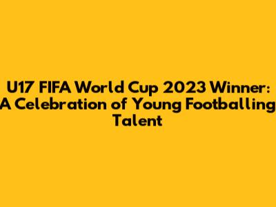 After a series of high-stakes matches and incredible performances, the coveted title of U17 FIFA World Cup 2023 champion went to [Insert the Winning Team Here]! Congratulations to them! They played with incredible skill, teamwork, and determination throughout the tournament. Their victory is a testament to their hard work, dedication, and the brilliant coaching staff that guided them. The team showed remarkable consistency, resilience, and a never-say-die attitude. Their journey to the final was filled with memorable matches, showcasing their ability to overcome challenges and perform under pressure. They dominated their opponents and outplayed their rivals with their strategic gameplay and effective teamwork. Their success highlights the importance of youth development programs and the cultivation of talent at a young age. Their victory is a source of pride for their nation. The team's performance throughout the tournament was inspiring and a joy to watch. Their skills are honed, and their teamwork is impeccable. Their victory is a well-deserved recognition of their hard work and talent. Their achievement will inspire future generations of young footballers, and their names will be etched in football history. Their success is a testament to their dedication, talent, and the power of teamwork.