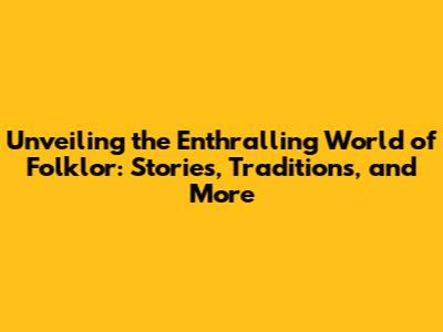Unveiling The Enthralling World Of Folklor: Stories, Traditions, And More