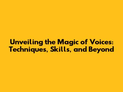 Unveiling The Magic Of Voices: Techniques, Skills, And Beyond