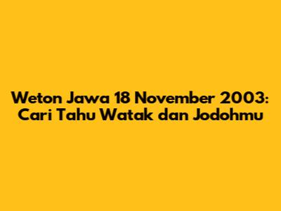 Halo, guys! Pernah gak sih kalian penasaran sama arti di balik tanggal lahir kalian, terutama kalau kita ngomongin soal Weton Jawa? Nah, buat kalian yang lahir di tanggal 18 November 2003, siap-siap ya, karena kita bakal kupas tuntas semua tentang weton kalian. Mengetahui weton itu seru banget, lho, karena bisa ngasih kita gambaran soal watak, rezeki, sampai kecocokan sama pasangan hidup. Jadi, kalau kamu lagi cari tahu lebih dalam soal dirimu atau mau ngasih kado istimewa buat temen yang ulang tahun di tanggal ini, pas banget nih baca artikel ini sampai habis! Kita akan bedah satu per satu, mulai dari neptu, watak, sampai ramalan jodoh yang pastinya bikin kalian makin pede sama pilihan hidup.